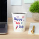 Stylish patriotic Quart de Juillet sur mesure conception de bocal de mason dispose d'un "Happy 4 juillet" de citation typographie texte design en rouge, bleu et bleu marine couleurs avec feux d'artifice célébrant