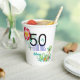Célébrez son 50e anniversaire avec cette coupe unique de fête avec un design tropical floral de verts, rouges, bleus et jaunes vibrants qui est personnalisée avec son propre nom.