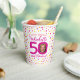 Gobelets En Papier 50e anniversaire confetti jaune rose deux photos