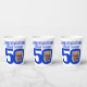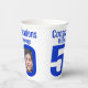 Personnalisez ce texte bleu vif sur des gobelets blancs de 50e anniversaire avec votre propre nom d'anniversaire et deux photos dans le 0 de 50. Texte amusant et design photo personnalisé. Idéal pour utiliser à une fête du cinquantième anniversaire pour montrer une photo de votre anniversaire garçon ou fille photos un maintenant et un de leur passé. D'autres articles correspondants sont disponibles. © Art graphique original et design par www.mylittleeden.com