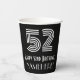 Cette tasse de papier d'anniversaire inspirée et vintage de Roaring Twenties est décorée d'un grand numéro de style Art déco "52", ainsi que le message de bienvenue "Happy 52nd Birthday" et un nom personnalisé. L'arrière - plan est noir de couleur. Des tasses de papier sur le thème de l’anniversaire comme celle-ci pourraient être utilisées lors d’une fête d’anniversaire célébrant le 52e anniversaire de quelqu’un. [~Z0000542]