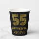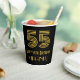 Ce look vintage et Roaring Twenties inspiré par la conception de tasse de papier à thème d'anniversaire comprend un grand style art déco inspiré numéro "55", en plus du message de voeux d'anniversaire "Happy 55th Birthday," et un nom personnalisé. L'arrière - plan est noir de couleur. Des tasses de papier sur le thème de l’anniversaire, comme celle-ci, peuvent être utilisées lors d’une fête célébrant le cinquantenaire de quelqu’un. [~Z0000546]