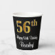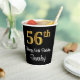 Cette conception élégante, sophistiquée et luxueuse de tasse en papier à thème d'anniversaire comporte un grand numéro ordinal "56th" ayant un look faux/imitation or, en plus du message de voeux d'anniversaire "Happy 56th Birthday," et un nom personnalisé dans une police de style script. L'arrière - plan est noir de couleur. Des tasses de papier comme celle-ci peuvent être utilisées à une fête pour quelqu'un qui fête son cinquante-sixième anniversaire. [~Z0000538]