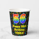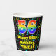 Ce design de gobelet en papier d'anniversaire à la musique joyeuse et joyeuse comporte un grand nombre de "56" ayant un motif inspiré par un gradient de spectre arc-en-ciel. Il comporte également le message "Joyeux 56ème anniversaire", et un nom personnalisé. L'arrière - plan dispose d'un motif de notes de musique colorées et de symboles. Des tasses en papier colorées et vibrantes comme celle-ci peuvent être amusantes à utiliser lors d’une fête d’anniversaire ou d’une fête qui se tient pour célébrer le cinquante-sixième anniversaire de quelqu’un. [~Z0000541]