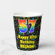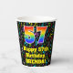 Ce design de gobelet en papier d'anniversaire sur le thème de la musique joyeuse et amusante comprend un grand nombre de "57" ayant un motif inspiré par un gradient de spectre arc-en-ciel. Il comporte également le message "Joyeux 57ème anniversaire", et un nom modifiable. L'arrière - plan dispose d'un motif coloré avec des notes de musique et des symboles de différentes couleurs et tailles. Des tasses en papier colorées et vibrantes comme celle-ci peuvent être amusantes à avoir lors d’une fête d’anniversaire qui a lieu pour honorer le 57e anniversaire de quelqu’un. [~Z0000541]