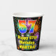 Cette conception colorée et joyeuse de tasse en papier à thème d'anniversaire comporte un grand nombre de "57" avec un dégradé de spectre arc-en-ciel inspiré motif, avec le message "Happy 57th Birthday,", et un nom personnalisé. L'arrière - plan présente un motif passionnant et coloré inspiré par les feux d'artifice de la fête. Des tasses en papier colorées et vibrantes comme celle-ci peuvent être amusantes à utiliser lors d’une fête d’anniversaire ou d’une fête qui a lieu pour célébrer le 57e anniversaire de quelqu’un. [~Z0000539]