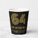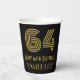 Ce style vintage et le style des années 1920-1930 inspiré par le design de tasse en papier à thème d'anniversaire, présente un grand look Art déco inspiré numéro "64", avec le message de voeux d'anniversaire "Happy 64th Birthday," et un nom personnalisé. L'arrière - plan est noir de couleur. Des tasses en papier de style vintage comme celle-ci peuvent être amusantes à utiliser lors d’une fête en l’honneur du soixante-quatrième anniversaire de quelqu’un. [~Z0000546]