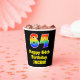 Ce design coloré et amusant de tasse en papier d'anniversaire comprend un grand nombre de "64" ayant un motif inspiré par un gradient de spectre arc-en-ciel. Il comporte également le message "Joyeux 64e anniversaire", et un nom personnalisé. L'arrière - plan est noir de couleur. Des tasses en papier colorées et vibrantes comme celle-ci peuvent être amusantes à utiliser lors d’une fête d’anniversaire ou d’une célébration pour honorer le soixante-quatrième anniversaire de quelqu’un. [~Z0000537]