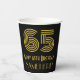 Cette tasse en papier d'anniversaire, inspirée du style des années 1920-1930 et de style vintage, est décorée d'un grand modèle Art déco inspiré numéro "65", ainsi que du message de voeux d'anniversaire "Happy 65th Birthday" et d'un nom personnalisé. L'arrière - plan est noir de couleur. Des tasses de papier comme celle-ci peuvent être utilisées à une fête pour quelqu'un qui fête son soixante-cinquième anniversaire. [~Z0000546]