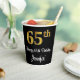 Ce design élégant, élégant et sophistiqué de tasse en papier à thème d'anniversaire comprend un grand numéro ordinal "65ème" avec une imitation/faux look d'inspiration or, plus le message de voeux d'anniversaire "Happy 65ème anniversaire", et un nom modifiable dans une police de style script. L'arrière - plan est noir de couleur. Des tasses de papier sur le thème de l'anniversaire comme celle-ci peuvent être amusantes à utiliser lors d'une fête d'anniversaire organisée pour quelqu'un qui célèbre son 65e anniversaire. [~Z0000538]