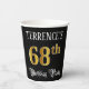 Ce design luxueux et raffiné de tasse de papier d'anniversaire comporte un nom personnalisé et le message "68e anniversaire fête". Le grand numéro "68ème" a un motif de coloriage imitation/faux d'inspiration or, les mots "fête d'anniversaire" sont dans un texte de style script opulent, et l'arrière - plan est coloré en noir par défaut (bien qu'il puisse être customisé). Des tasses de papier élégantes et opulentes comme celle-ci pourraient être utiles à une célébration d’anniversaire ou à une fête pour célébrer le 68e anniversaire de quelqu’un. [~Z0000567]