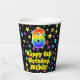 Cette conception joyeuse et colorée de tasse en papier sur le thème de l'anniversaire comporte un grand nombre "6" avec un motif inspiré par un gradient de spectre arc-en-ciel, ainsi que le message "Joyeux 6e anniversaire", et un nom modifiable. L'arrière - plan dispose d'un motif multicolore inspiré par un champ d'étoiles. Des tasses de papier colorées et vibrantes comme celle-ci peuvent être amusantes à avoir lors d’une fête d’anniversaire organisée pour célébrer le 6e anniversaire de quelqu’un. [~Z0000540]
