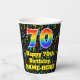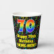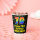 Ce design de tasse de papier d'anniversaire à thème musical coloré et gai comporte un grand nombre de "70" ayant un dégradé de spectre arc-en-ciel inspiré motif. Il comporte également le message "Joyeux 70e anniversaire", et un nom modifiable. L'arrière - plan dispose d'un motif coloré avec des notes de musique et des symboles de différentes couleurs et tailles. Des tasses en papier colorées et vibrantes comme celle-ci peuvent être amusantes à utiliser lors d’une fête d’anniversaire ou d’une célébration pour honorer le soixante-dixième anniversaire de quelqu’un. [~Z0000541]
