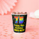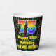Ce design joyeux et coloré de tasse de papier d'anniversaire sur le thème de la musique présente un grand nombre de "75" ayant un dégradé arc-en-ciel inspiré motif. Il comporte également le message "Joyeux 75e anniversaire", et un nom personnalisé. L'arrière - plan dispose d'un motif passionnant et coloré avec des notes de musique et des symboles de différentes couleurs et tailles. Des tasses en papier colorées et vibrantes comme celle-ci peuvent être amusantes à utiliser lors d’une fête d’anniversaire qui a lieu pour célébrer le soixante-quinzième anniversaire de quelqu’un. [~Z0000541]