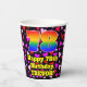Cette conception joyeuse et joyeuse de tasse de papier d'anniversaire comporte un grand nombre de "78" avec un dégradé arc-en-ciel inspiré motif, ainsi que le message "Happy 78th Birthday,", et un nom personnalisé. L'arrière - plan présente un motif de formes cardiaques avec des couleurs comme le violet, le rouge et le rose. Des gobelets de papier amusants et optimistes comme celui-ci peuvent être amusants à avoir à l’occasion d’une fête d’anniversaire pour célébrer le 78e anniversaire de quelqu’un. [~Z0000548]