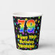 Ce design joyeux et coloré de tasse en papier sur le thème de l'anniversaire comporte un grand nombre de "79" avec un motif inspiré par un gradient de spectre arc-en-ciel, ainsi que le message "Happy 79th Birthday," et un nom personnalisé. L'arrière - plan dispose d'un motif passionnant et coloré inspiré d'un champ d'étoiles. Des tasses de papier colorées et vibrantes comme celle-ci peuvent être amusantes à utiliser lors d’une fête d’anniversaire qui a lieu pour célébrer le soixante-dix-neuvième anniversaire de quelqu’un. [~Z0000540]