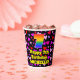 Cette conception joyeuse et amusante de tasse en papier à thème d'anniversaire dispose d'un grand nombre "7" ayant un gradient de spectre arc-en-ciel inspiré motif. Il comporte également le message "Joyeux 7e anniversaire", et un nom personnalisé. L'arrière - plan présente un motif aux formes de coeur violet, rouge et rose. Des tasses de papier gaies et amusantes comme celle-ci peuvent être amusantes à utiliser lors d’une fête d’anniversaire organisée pour célébrer le 7e anniversaire de quelqu’un. [~Z0000548]