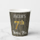 Ce design élégant et raffiné de tasse de papier à thème d'anniversaire comporte un nom modifiable et le message "7e fête d'anniversaire". Le grand numéro "7th" présente un motif de couleur d'inspiration or imitation ou fausse, les mots "Birthday Party" sont dans un texte de style script opulent, et l'arrière - plan présente un motif d'inspiration boisée imitation. Des gobelets en papier de luxe comme celui-ci pourraient être utiles à une fête d’anniversaire organisée pour célébrer le septième anniversaire de quelqu’un. [~Z0000568]