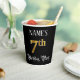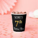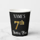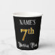 Ce design élégant et opulent de tasse de papier d'anniversaire comporte un nom modifiable et le message "7th Birthday Party". Le grand numéro "7th" a un motif de coloriage d'inspiration fausse/imitation or, les mots "Birthday Party" sont dans un texte orné de style script, et l'arrière - plan est coloré noir par défaut (bien qu'il puisse être customisé). Des tasses de papier élégantes et ornées comme celle-ci pourraient être utiles à une célébration d’anniversaire pour célébrer le septième anniversaire de quelqu’un. [~Z0000567]