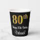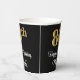 Ce design luxueux, élégant et sophistiqué de tasse de papier d'anniversaire comprend un grand numéro ordinal "80th" ayant une imitation/fausse apparence d'inspiration or, plus le message de voeux d'anniversaire "Happy 80th Birthday," et un nom personnalisé dans une police de style script. Il dispose également d'une arrière - plan de couleur noire. Des tasses de papier comme celle-ci peuvent être utilisées à une fête pour quelqu'un qui fête son 80e anniversaire. [~Z0000538]
