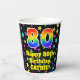 Cette conception amusante et joyeuse de tasse de papier d'anniversaire comporte un grand nombre "80" avec un dégradé de arc-en-ciel inspiré motif, avec le message "Joyeux 80e anniversaire", et un nom personnalisé. L'arrière - plan dispose d'un motif passionnant et coloré ayant de nombreuses formes étoiles avec différentes tailles et couleurs. Des tasses de papier colorées et vibrantes comme celle-ci peuvent être amusantes à utiliser lors d’une fête d’anniversaire ou d’une fête qui a lieu pour célébrer le 80e anniversaire de quelqu’un. [~Z0000540]