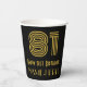 Cette conception de tasse en papier inspirée et vintage de Roaring Twenties présente un grand numéro de look d'inspiration art déco "81", ainsi que le message d'anniversaire "Happy 81st Birthday", ainsi qu'un nom personnalisable. L'arrière - plan est noir de couleur. Des tasses de papier sur le thème de l’anniversaire comme celle-ci pourraient être une façon amusante de célébrer le quatre-vingt-unième anniversaire de quelqu’un. [~Z0000546]