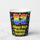Ce design joyeux et coloré sur le thème de l'anniversaire de la coupe en papier dispose d'un grand nombre de "83" avec un motif inspiré par un gradient de spectre arc-en-ciel. Il comporte également le message "Joyeux 83e anniversaire", et un nom personnalisable. L'arrière - plan dispose d'un motif multicolore inspiré par un champ d'étoiles. Des tasses en papier colorées et vibrantes comme celle-ci peuvent être amusantes à utiliser lors d’une fête d’anniversaire qui se tient pour célébrer le quatre-vingt-troisième anniversaire de quelqu’un. [~Z0000540]