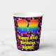 Ce design de gobelet en papier d'anniversaire heureux et coloré comprend un grand nombre de "84" ayant un motif inspiré par un gradient de spectre arc-en-ciel. Il comporte également le message "Joyeux 84e anniversaire", et un nom personnalisable. L'arrière - plan présente un motif aux formes de coeur rouge, violet et rose. Des tasses de papier aussi amusantes et optimistes pourraient être amusantes à avoir lors d’une fête d’anniversaire qui se tient à l’occasion du 84e anniversaire de quelqu’un. [~Z0000548]