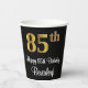 Ce design sophistiqué, élégant et élégant de tasse en papier à thème d'anniversaire comprend un grand numéro ordinal "85ème" avec un motif dégradé faux/imitation or, plus le message de voeux d'anniversaire "Happy 85ème anniversaire", et un nom personnalisé dans une police de style script. Il dispose également d'une arrière - plan de couleur noire. Des tasses de papier sur le thème de l'anniversaire comme celle-ci peuvent être amusantes à utiliser lors d'une fête d'anniversaire organisée pour quelqu'un qui célèbre son 85e anniversaire. [~Z0000538]