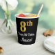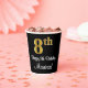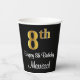 Cette conception élégante, luxueuse et élégante de tasse en papier sur le thème de l'anniversaire comporte un grand numéro ordinal "8th" avec un motif dégradé faux/imitation or, en plus du message de voeux d'anniversaire "Happy 8th Birthday", et un nom personnalisable dans une police de style script. L'arrière - plan est noir de couleur. Des tasses de papier sur le thème de l’anniversaire comme celle-ci pourraient être utilisées lors d’une fête célébrant le 8e anniversaire de quelqu’un. [~Z0000538]