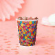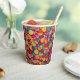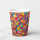 Colorful circular shapes cover this 8oz paper cup. This unique design will add vibrant color and fun to your party decor!