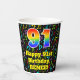 Ce motif musical gai et joyeux à thème de la conception de tasse de papier d'anniversaire comprend un grand nombre "91" avec un motif inspiré par un gradient de spectre arc-en-ciel, ainsi que le message "Happy 91st Birthday," et un nom personnalisé. L'arrière - plan dispose d'un motif de notes de musique et de symboles colorés et vibrants. Des tasses en papier colorées et vibrantes comme celle-ci peuvent être amusantes à utiliser lors d’une fête d’anniversaire qui a lieu pour célébrer le 91e anniversaire de quelqu’un. [~Z0000541]