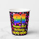 Ce design joyeux et amusant de tasse de papier d'anniversaire comprend un grand nombre "91" avec un motif inspiré par un gradient de spectre arc-en-ciel. Il comporte également le message "Happy 91st Birthday", ainsi qu'un nom personnalisable. L'arrière - plan présente un motif de formes cardiaques rouges, roses et violettes de différentes tailles. Des gobelets de papier amicaux et heureux comme celui-ci peuvent être amusants à utiliser lors d’une fête d’anniversaire qui a lieu pour célébrer le 91e anniversaire de quelqu’un. [~Z0000548]