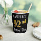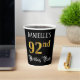 Ce design luxueux et raffiné de tasse en papier à thème d'anniversaire comporte un nom personnalisé et le message "92e fête d'anniversaire". Le grand numéro "92nd" a un motif de coloriage d'inspiration fausse/imitation or, les mots "fête d'anniversaire" sont en texte orné de script, et l'arrière - plan est coloré noir par défaut (bien qu'il puisse être customisé). Des tasses de papier aussi élégantes et opulentes pourraient être utiles lors d’une célébration d’anniversaire ou d’une fête pour célébrer le 92e anniversaire de quelqu’un. [~Z0000567]