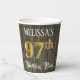 Ce design élégant et élégant de tasse de papier d'anniversaire comporte un nom personnalisé et le message "97th Birthday Party". Le grand numéro "97th" présente une imitation/un faux motif de couleur d'inspiration or, les mots "Birthday Party" sont dans un texte de style script opulent, et l'arrière - plan présente un motif d'inspiration simili/imitation bois. Des gobelets en papier de luxe comme celui-ci pourraient être utiles à une fête d’anniversaire ou à une fête pour célébrer le 97e anniversaire de quelqu’un. [~Z0000568]
