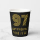 This 1920s-1930s style inspired and vintage look birthday-themed paper cup design features a large art deco inspired appearance number “97”, in addition to the birthday greeting message “Happy 97th Birthday,” and an editable name. It also has a black-colored background. 1920s-1930s style inspired paper cups like this might be fun to use at a birthday party being held for somebody who is celebrating their ninety seventh birthday. [~Z0000546]