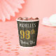 Cette élégante et luxueuse conception de tasse en papier à thème d'anniversaire comporte un nom modifiable et le message "98th Birthday Party". Le grand numéro "98th" a un motif de coloriage d'inspiration or imitation/fausse, les mots "Birthday Party" sont dans un texte de style script sophistiqué, et l'arrière - plan a un aspect imitation/faux grain d'origine. Des tasses de papier ornées et opulentes comme celle-ci pourraient être utiles lors d’une fête d’anniversaire pour célébrer le quatre-vingt-dix-huitième anniversaire de quelqu’un. [~Z0000568]