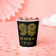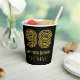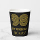 This Roaring Twenties inspired and vintage style birthday paper cup design features a large art deco inspired look number “98”, in addition to the birthday greeting message “Happy 98th Birthday,” and an editable name. It also has a black-colored background. Roaring Twenties inspired paper cups like this might be fun to use at a party being held for somebody who is celebrating their ninety eighth birthday. [~Z0000546]