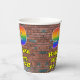 Ce graffiti urbain amusant et excitant et le street art inspiré par le design de tasse de papier d'anniversaire comprend un grand nombre de "99" avec un dégradé coloré de l'arc en ciel inspiré motif, avec le message "Happy 99th Birthday,", et un nom personnalisé. L'arrière - plan dispose d'un motif mural en brique. Des tasses en papier colorées et vibrantes comme celle-ci peuvent être amusantes à utiliser lors d’une fête d’anniversaire ou d’une fête qui a lieu pour célébrer le quatre-vingt-dix-neuvième anniversaire de quelqu’un. [~Z0000543]