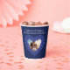 Personnalisez ces tasses de papier pour mariage anniversaire de Lapis Lazuli bleu perle avec vos propres noms, photo, date et années de mariage de couples d'anniversaire de neuvième mariage. D'autres articles correspondant au neuvième anniversaire sont disponibles. Lapis Lazuli effet coeur de perle l'art graphique et le design par Sarah Trett pour www.mylittleeden.com et www.mylittleedenweddings.com