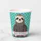 Gobelets En Papier Adorable Sloth Turquoise L'heureux animal d'annive