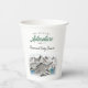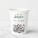 Cette tasse en papier baby shower offre un thème d'aventure qui présente un paysage de nature aquarelée de montagnes, d'étangs et de pins. Ces tasses personnalisées seront un accent amusant pour votre événement baby shower.