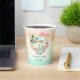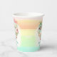 Des tasses en papier tropicales d'été à thème hawaïen aux couleurs pastel, dotées d'un coeur tropical avec vue sur la plage, de flamants roses et de fleurs avec un arrière - plan de couleur arc-en-ciel. Personnalisez facilement le texte. - Kate Eden Art