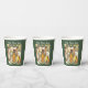 Ces tasses en papier sont vert foncé avec une texture brodée avec une Indienne Américaine dans une forêt avec arc et flèche et tipi. Customisez votre texte avec les modèles à l'avant et à l'arrière.