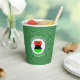 Des tasses en papier avec des couvercles pour votre fête ont un ange portant le drapeau de la diaspora africaine pour la décoration de fête ou de Noël. L'ange de Noël du drapeau afro-américain se trouve à l'intérieur d'un cercle fractal blanc de carrés grossiers. L'arrière - plan est une fractale verte de carrés grossiers. Ajoutez votre propre texte ou personnalisez avec un nom et l'année. Peut aussi être utilisé pour Kwanzaa.