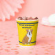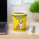 Faites une bonne fête avec ces tasses personnalisées. Ils sont parfaits pour les fêtes d'anniversaire ou autres célébrations en l'honneur d'amoureux de les chiens de tous âges. Ils présentent une illustration réaliste d'un bulldog anglais brun clair et blanc contre un arrière - plan jaune vif aux rayures bleu marine. Le lettrage bleu marine épelle votre message personnalisé. Le graphique et le message apparaissent à l'avant et à l'arrière de la tasse.