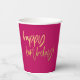 Gobelets En Papier Anniversaire rose chaud et or heureux