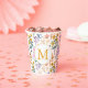 Gobelets En Papier Aquarelle colorée Fleur de printemps Motif Monogra