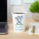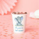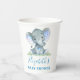 Aquarelle Bébé Eléphant sur Baby shower de fougères tasses en papier. Texte bleu.