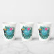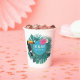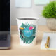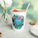 Conception de tasse en papier coloré avec un cadre turquoise rond bordé d'un toucan audacieux assis parmi des fleurs d'hibiscus aquarelle et des feuilles de palme. Ce design tropical est parfait pour l'été, la plage et les mariages tropicaux, ou facilement adapté pour les anniversaires et autres événements. Recherchez ID577 pour voir les produits correspondants.